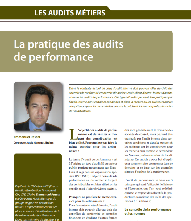 Rédacteur de l'article en français pour l'IFACI d'un article sur les audits de performance .