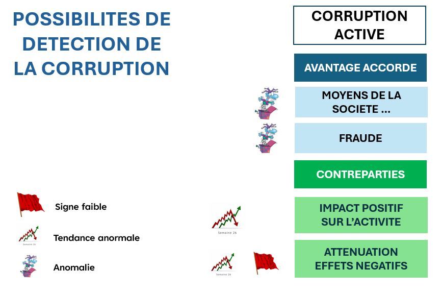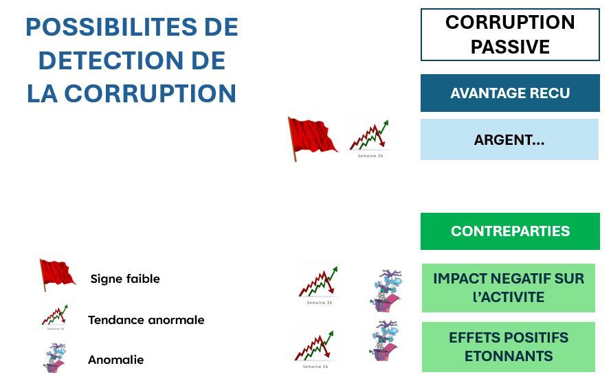 La corruption active de la corruption passive doivent être traités différemment, car elles reposent sur des processus différents, mais la méthode de détection va reposer sur la même approche.